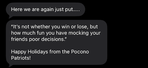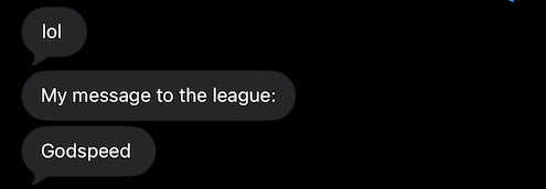 I only thank myself for this accomplishment. I picked a team of winners despite having 11 enemies planning, plotting, and scheming against me and the legacy I am trying to build here. Every victory I have earned in every season I have participated has brought me nothing but joy. Knowing the investment in thousands if not tens of thousands of wasted hours by my competition from watching, playing, and talking about football only to be defeated by someone who’s only experience comes from Mutant League Football, the Dreamcast college football game, the copy of Madden 2001 I got included with my Playstation 2 in 2003, and two and a half to three quarters of a full game each year during the Super Bowl. This week’s victory is only the start. I won it all in 2019 and I am in the mood to win it again. Now that I broke the seal of making it, you are going to be seeing more words from here over this season. When the dust settles in January I will be sizing up a nice little nook to set my trophy with the new base up in. I’d wish you all good luck, but you wouldn’t know what to do with it.