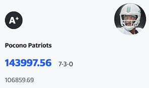 I needed a win, but it wouldn't have been possible without Brian. Every year he changes his team name and mocks Tua in our head to head. Every year it doesnt work. So I thank you Brian for giving me a breath of life. Tua isn't the dolphins answer, I fear, but he may be the fantasy idol I need. We all need hope in this world. Fantasy let's me draft people id never get to cheer or hate for like this. My Mets failed, the Ryder cup Americans failed, my job tortures me. However, I got high points under the guise of Make America Gronk Again...... and for that I'll take a meaningless victory lap to be 1 and 3.