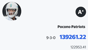 I needed a win, but it wouldn't have been possible without Brian. Every year he changes his team name and mocks Tua in our head to head. Every year it doesnt work. So I thank you Brian for giving me a breath of life. Tua isn't the dolphins answer, I fear, but he may be the fantasy idol I need. We all need hope in this world. Fantasy let's me draft people id never get to cheer or hate for like this. My Mets failed, the Ryder cup Americans failed, my job tortures me. However, I got high points under the guise of Make America Gronk Again...... and for that I'll take a meaningless victory lap to be 1 and 3.